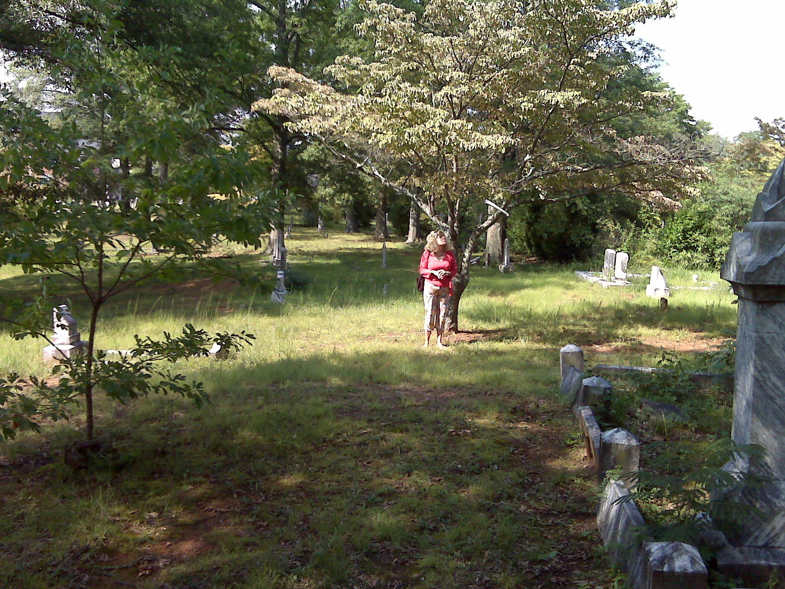Myra standing under a dogwood in an old cemetery