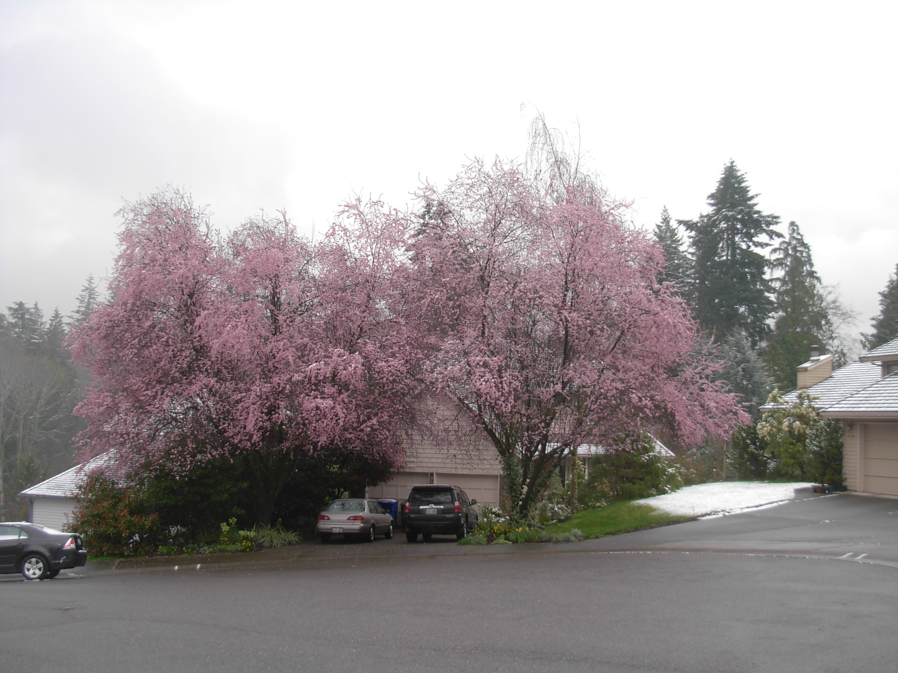 Our Ornamental Plums in Flower - with Snow!