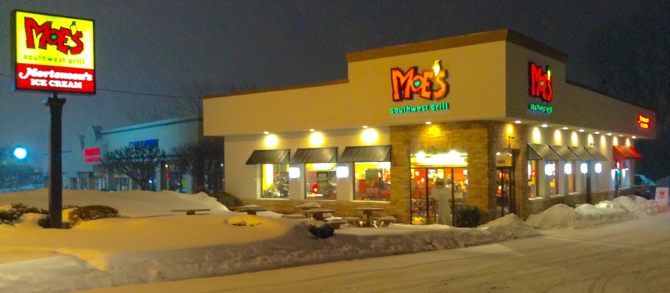 Moe's Southwest Grill, Snow Winter, Newington, CT, 3/2014, by Mike Mozart of TheToyChannel and JeepersMedia on YouTube #Moes #Southwest #Grill