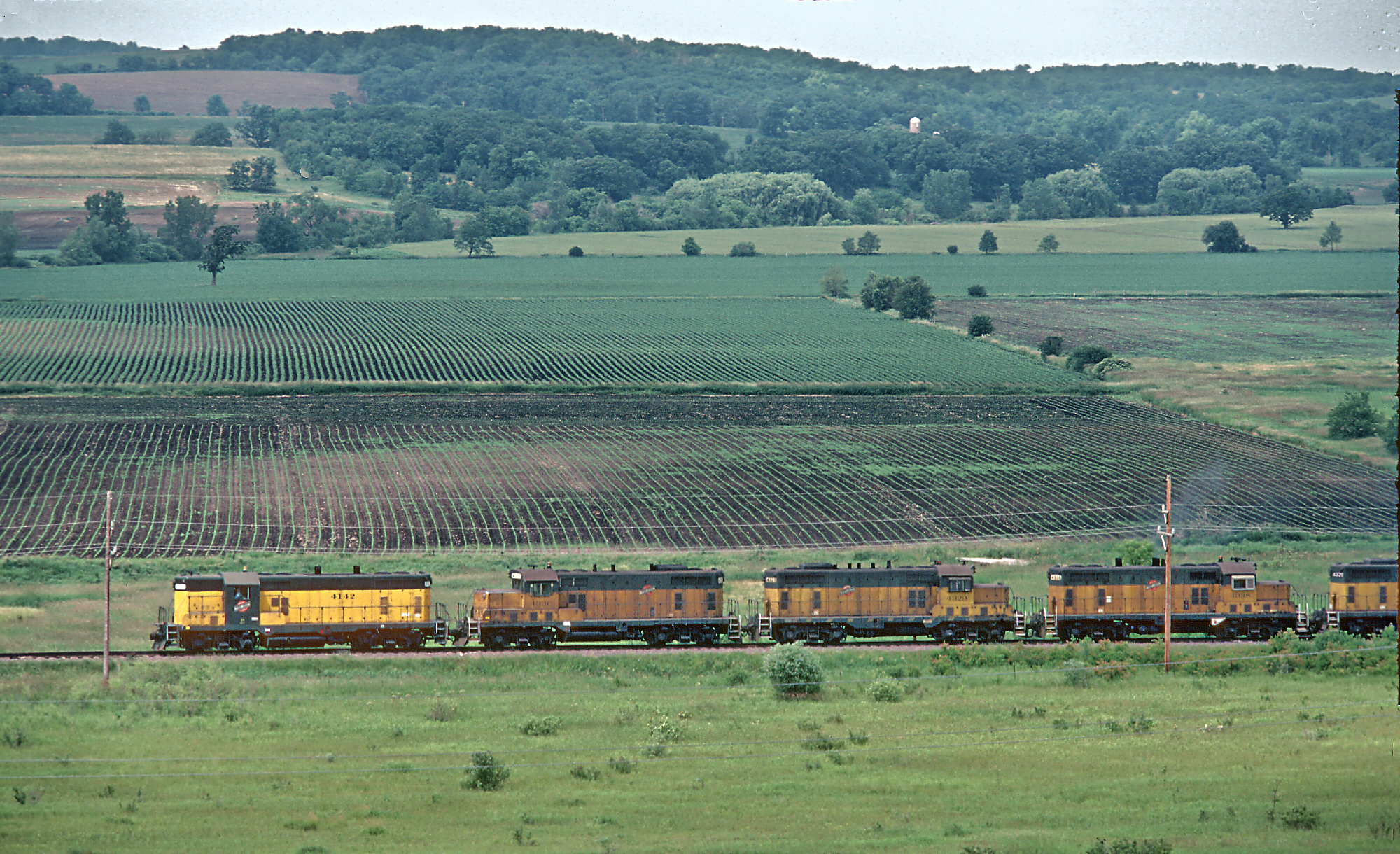 zdCNW 4142 and 4336 (ex-CRIP GP7R and GP7) West of Waukesha, WI in July 1982 (4)