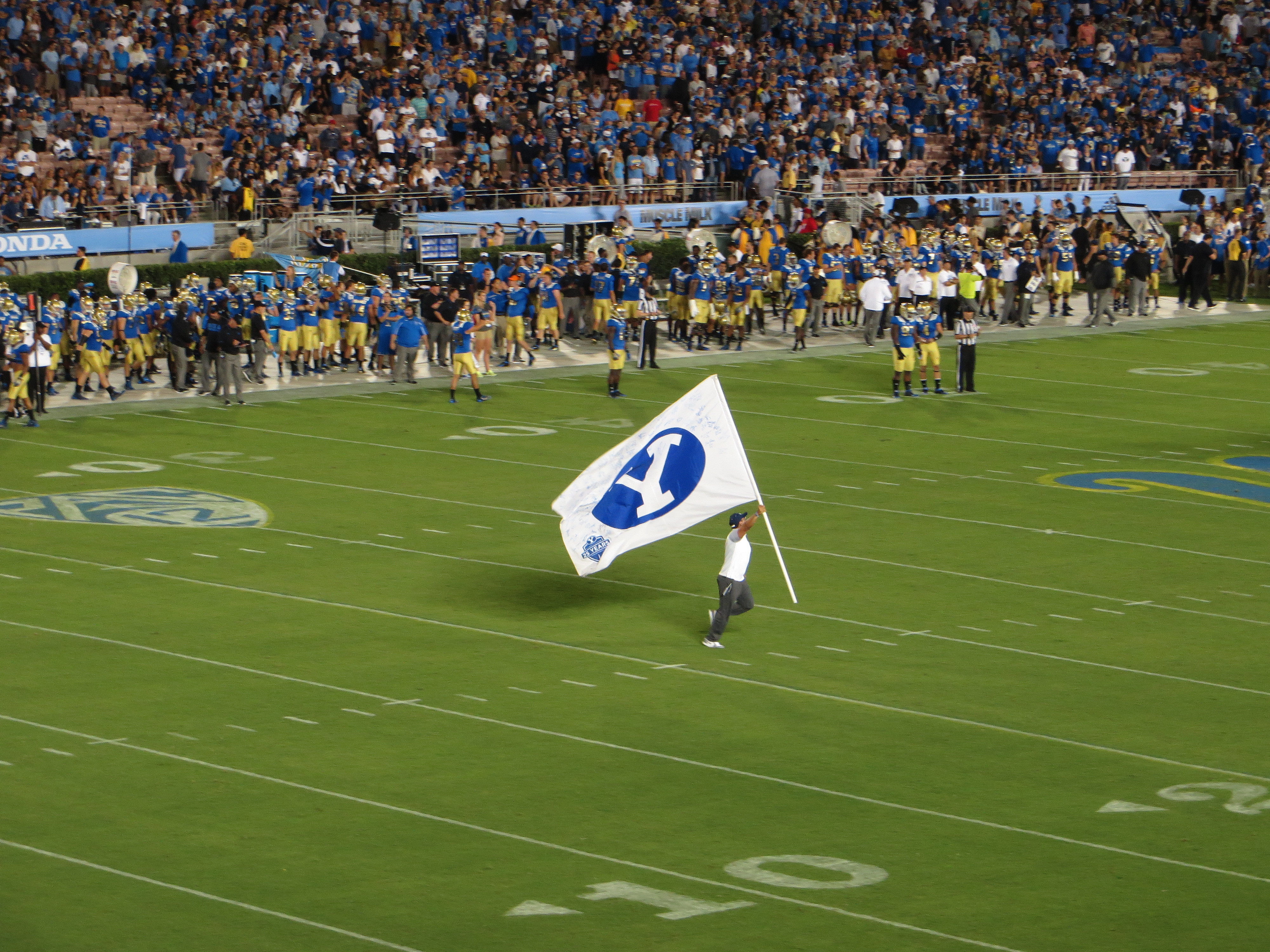 Alumni Flag for BYU Prior to BYU-UCLA Game, Rose Bowl, Pasadena, California