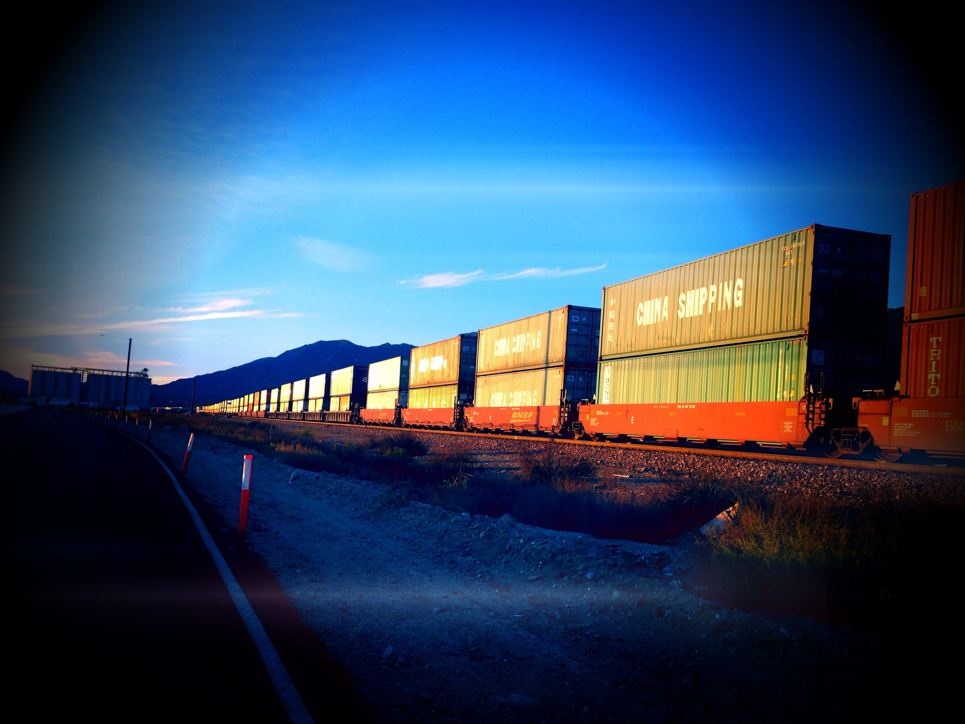 Mike and I out for a Sunday drive when I noticed the sun bouncing off the side of the train...