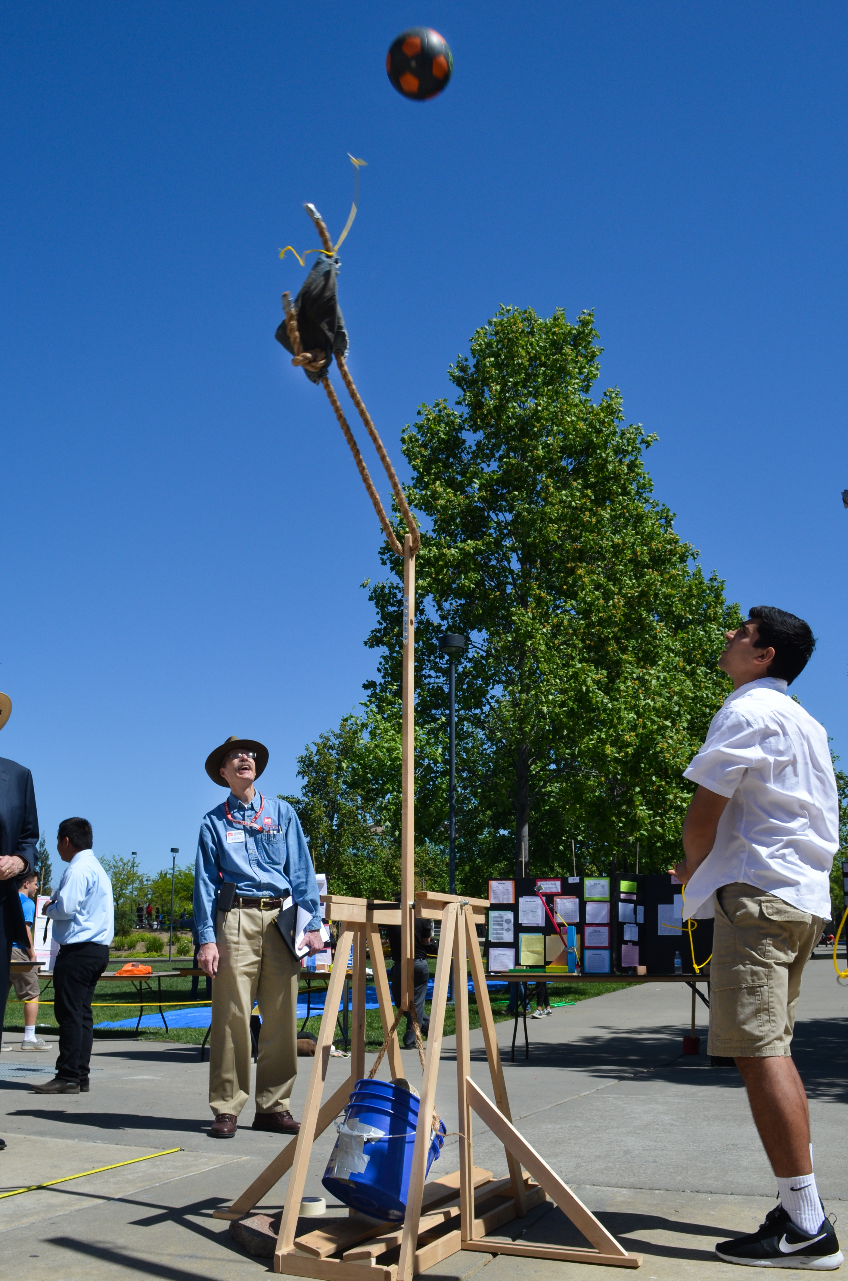 Brad Call watches a trebuchet in action