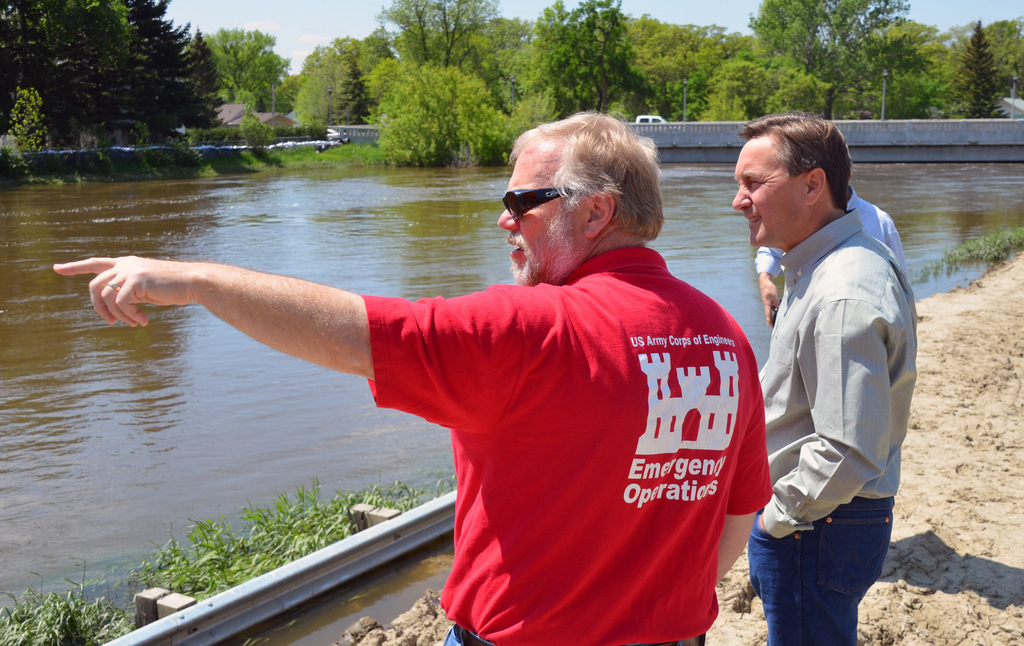 Officials discuss temporary levees within the city of Minot, N.D
