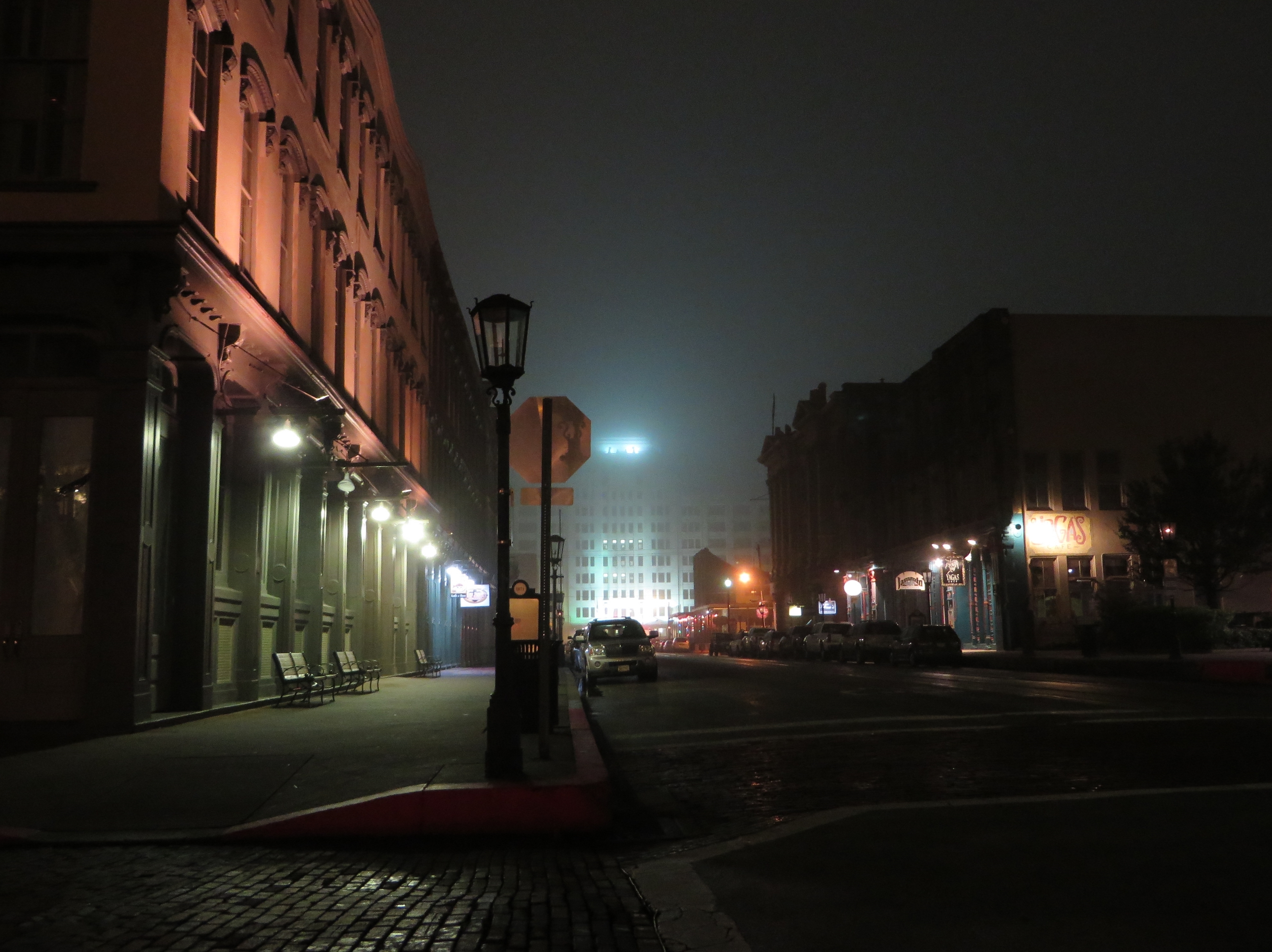 Cold, Foggy, and Empty Night, The Strand Historic District, Galveston, Texas