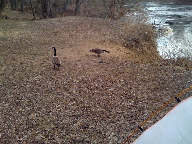 Two Canadian geese approach me to share my breakfast...