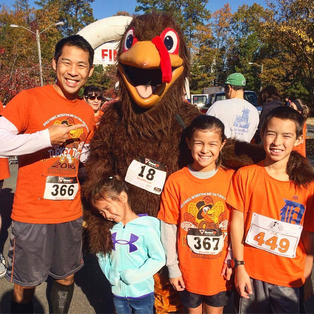 Perfect day for a 5k 🏃. Sam missed the hardware in her age group by 3 seconds 😬 27:27. Good race for these guys! #5k #apexturkeytrot