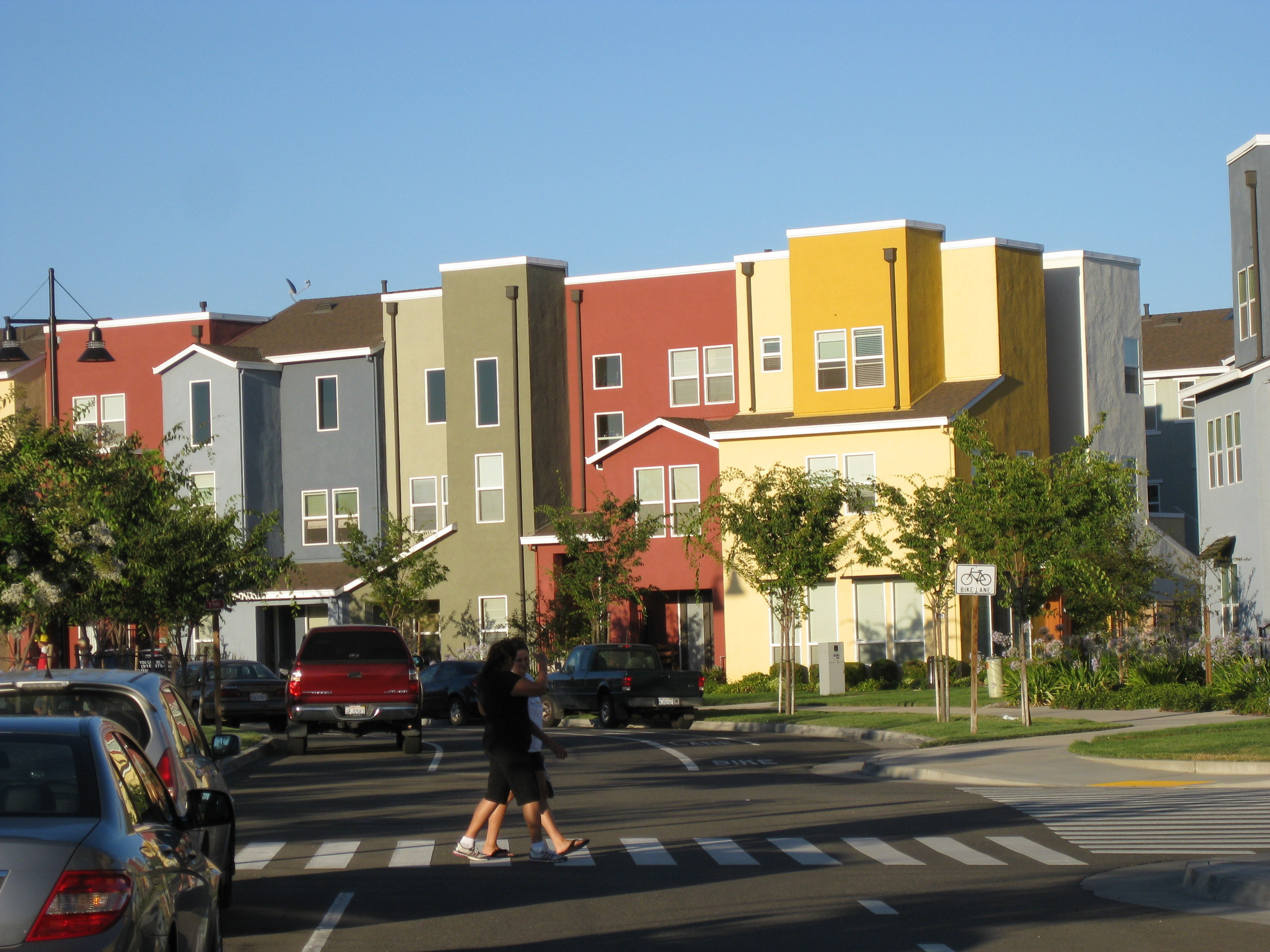 Pedestrians crossing a complete street