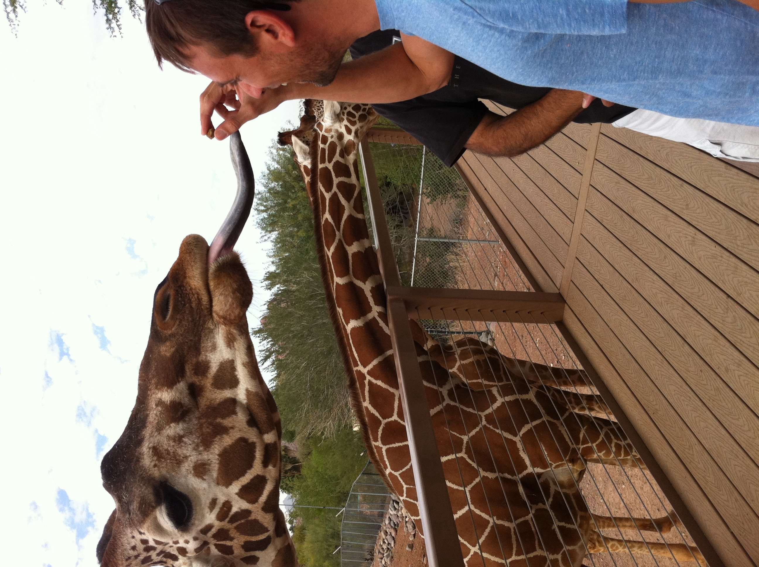 Feeding a giraffe