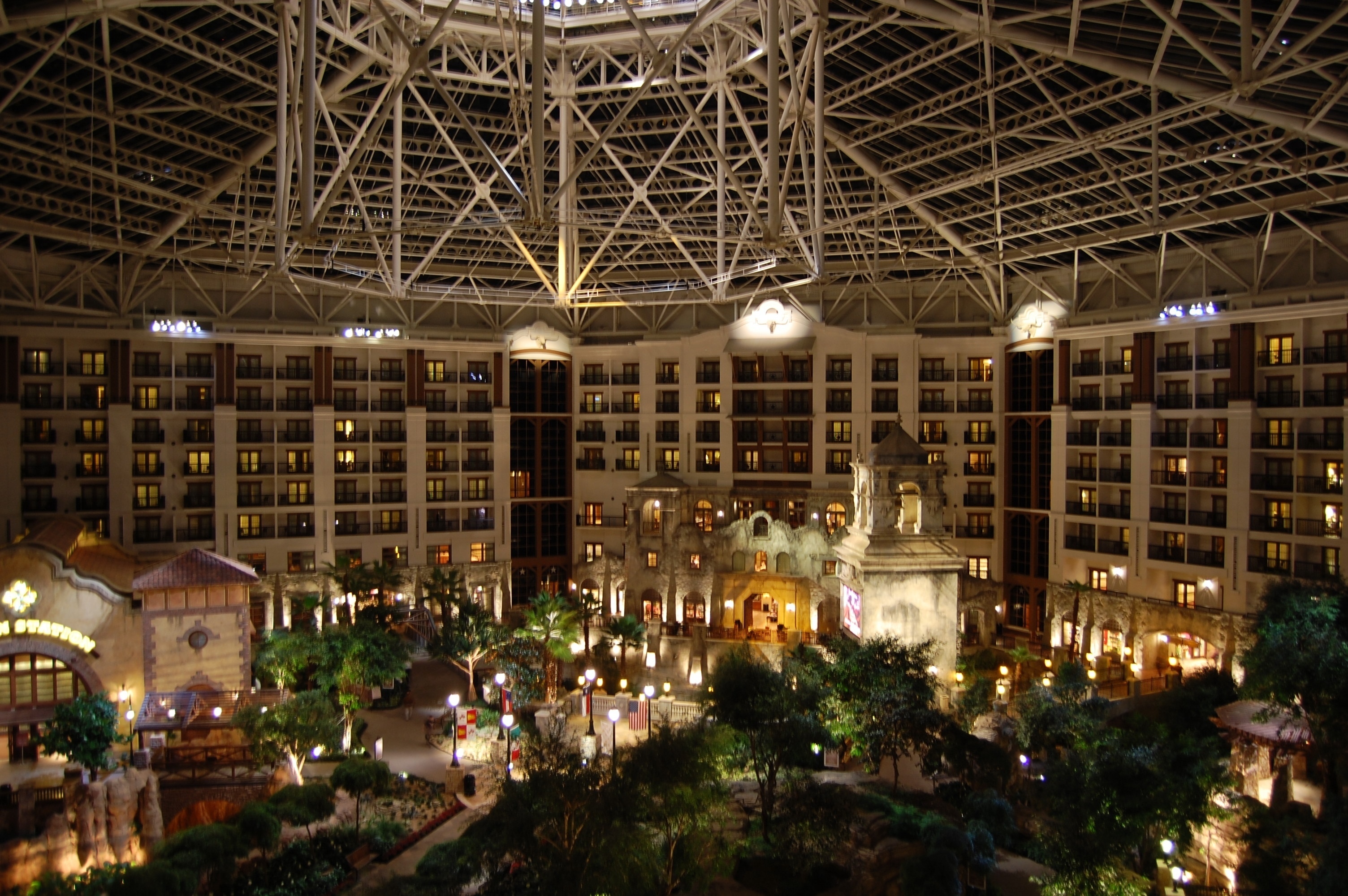 Looking towards the Alamo at night