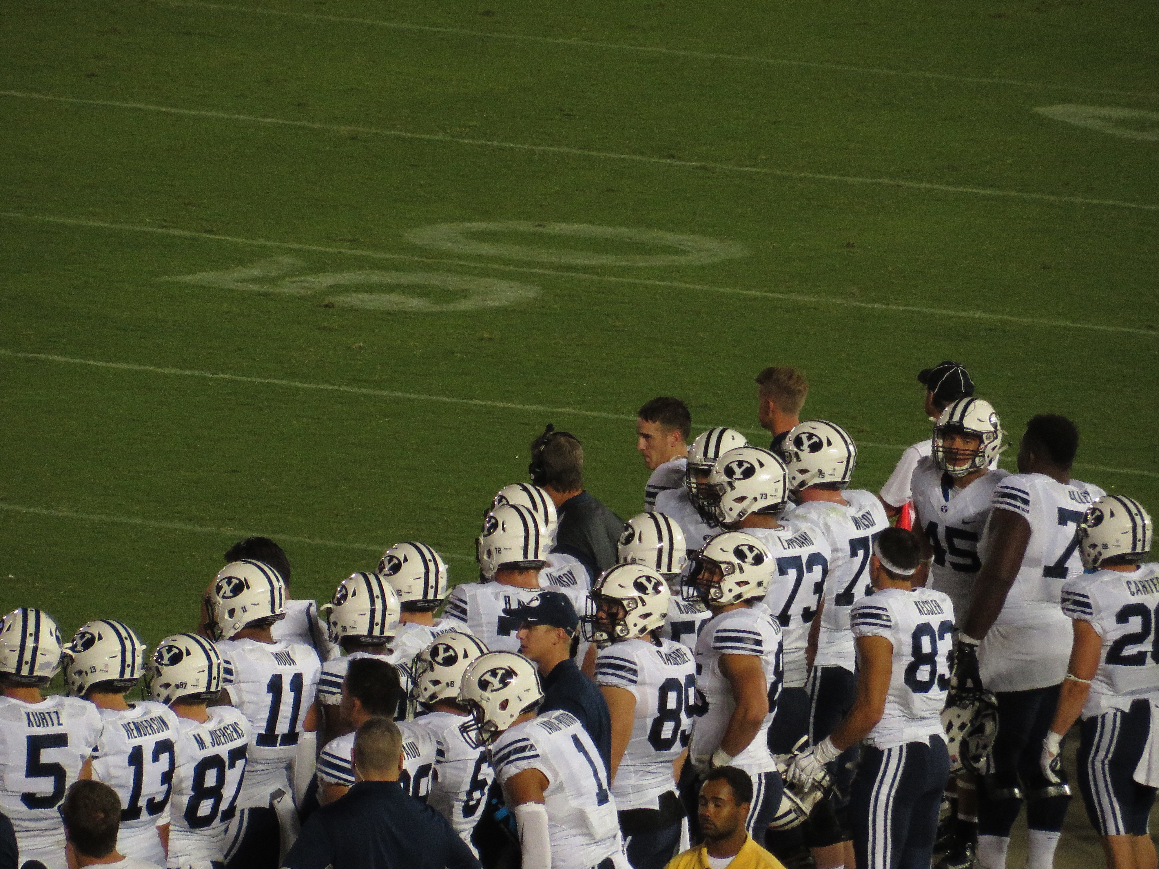 BYU Sideline, UCLA Bruins 24, BYU Cougars 23, Rose Bowl, Pasadena, California