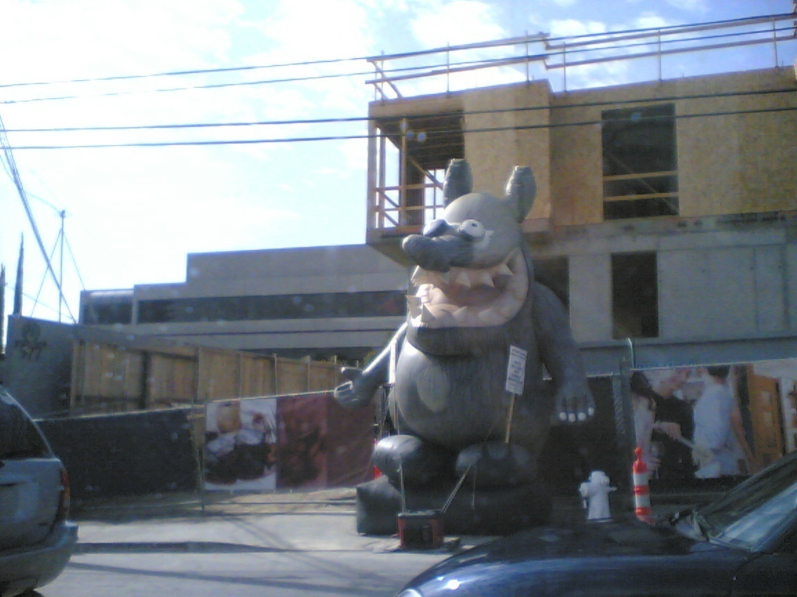 Low-wage protesters by construction site