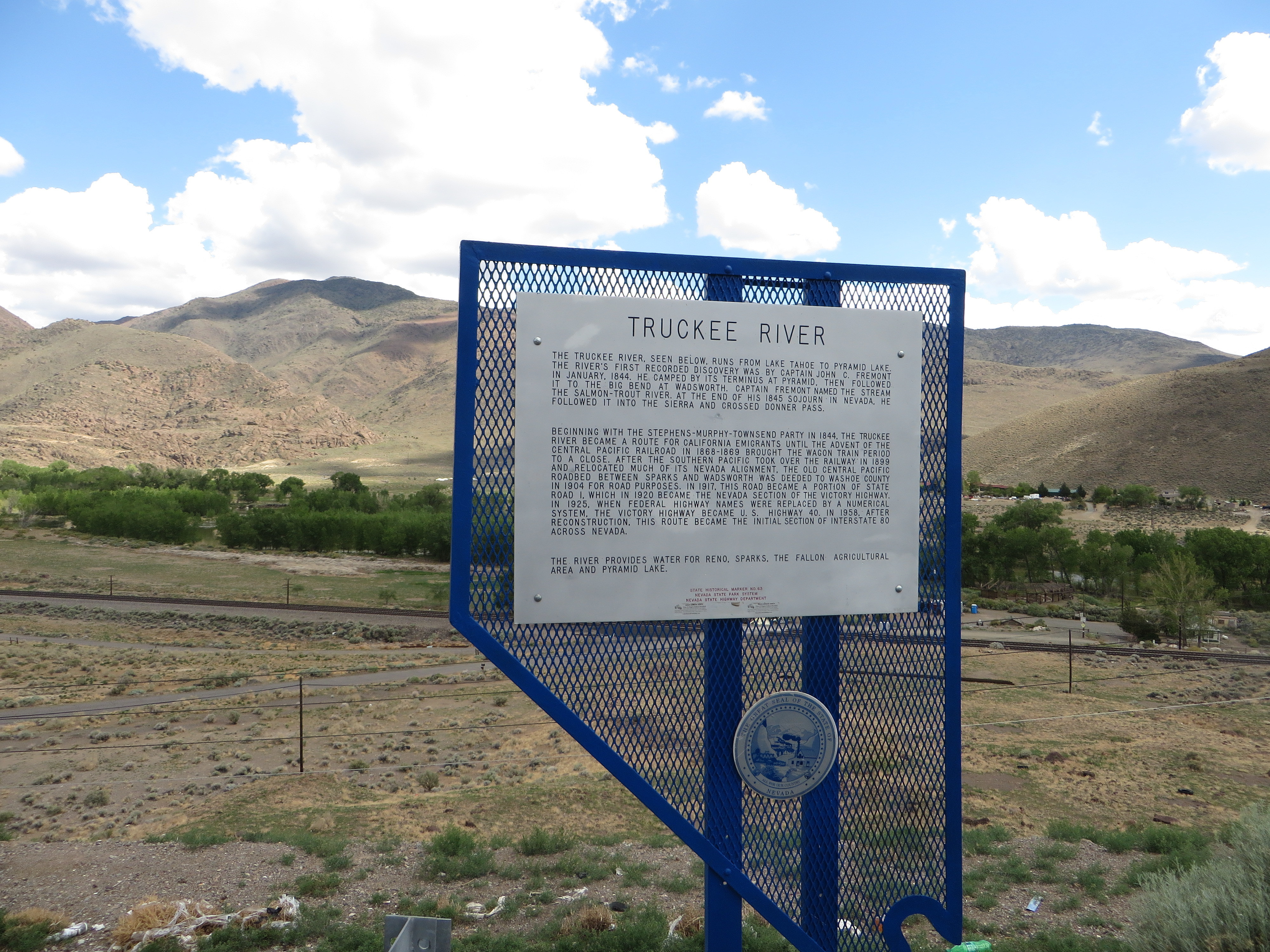 Truckee River (East), Nevada Historical Marker No. 63, Near Sparks, Nevada