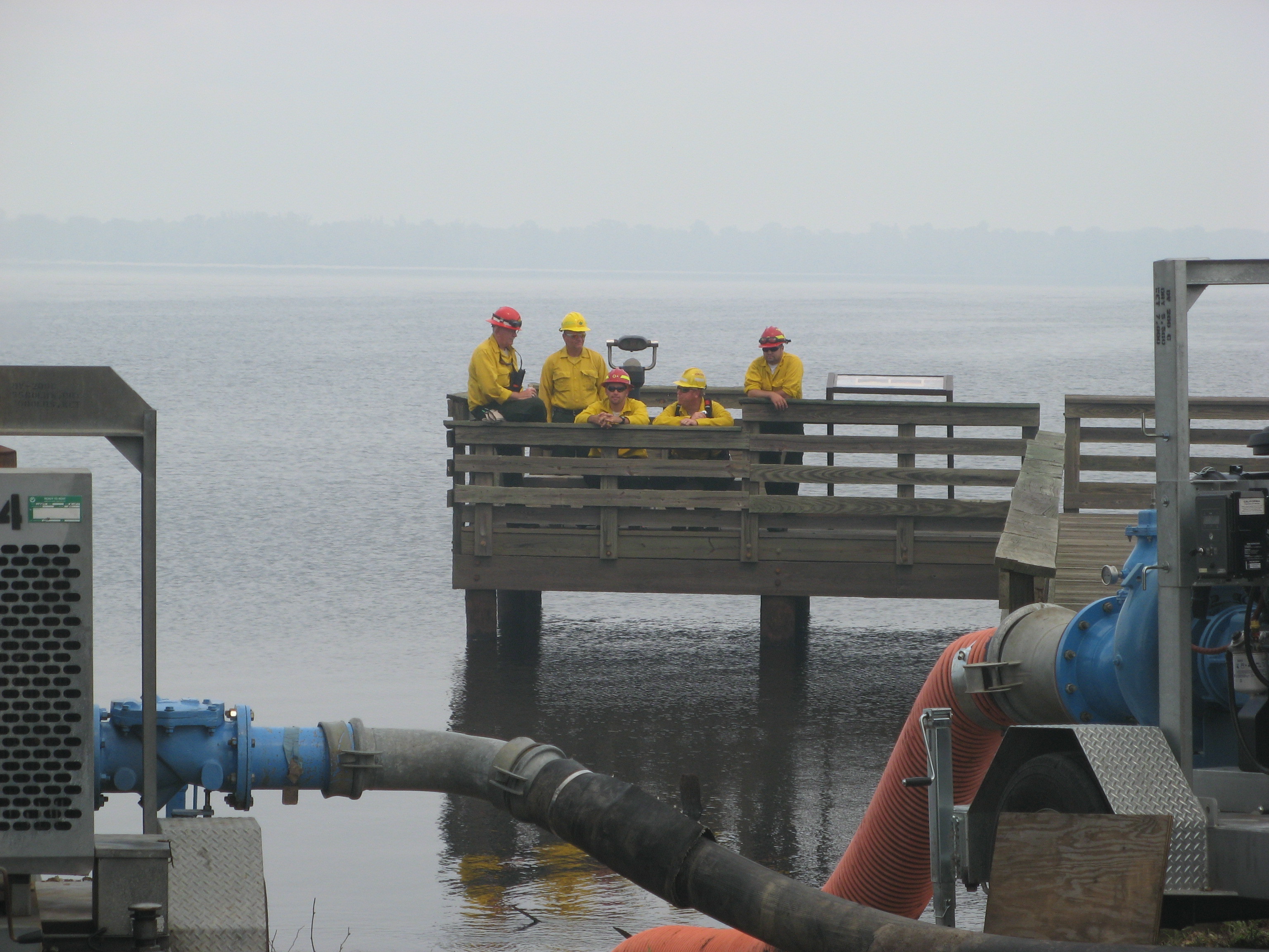 Firefighters on Lake Drummond
