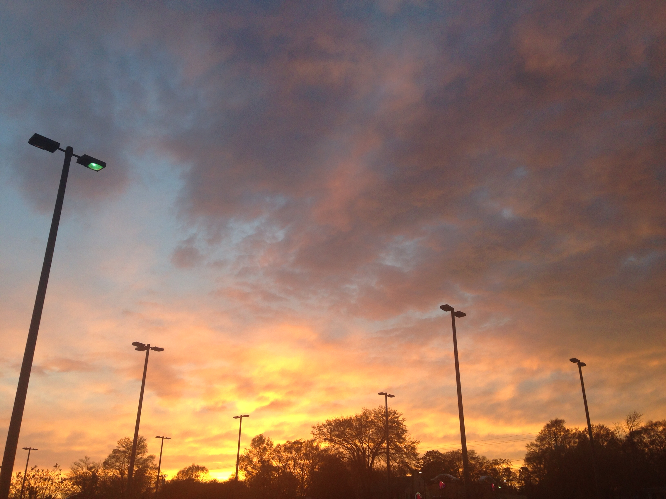Grocery store parking lot, early evening sky.